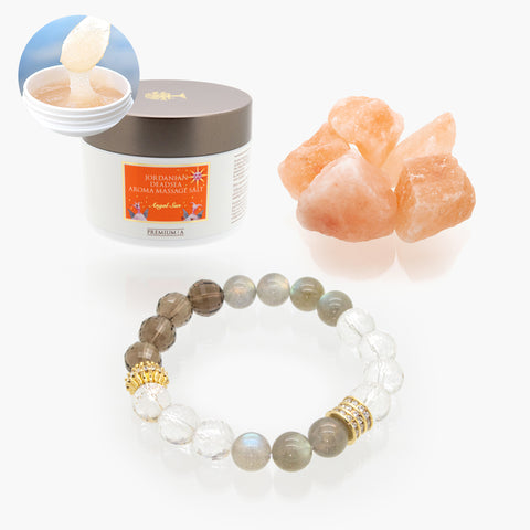 【ブレスレット+浄化塩セット】ではルビーソルト300gに、「ジョルダニアン デッドシー アロマ マッサージ ソルト 【Angel Sun】」150gが付きます。